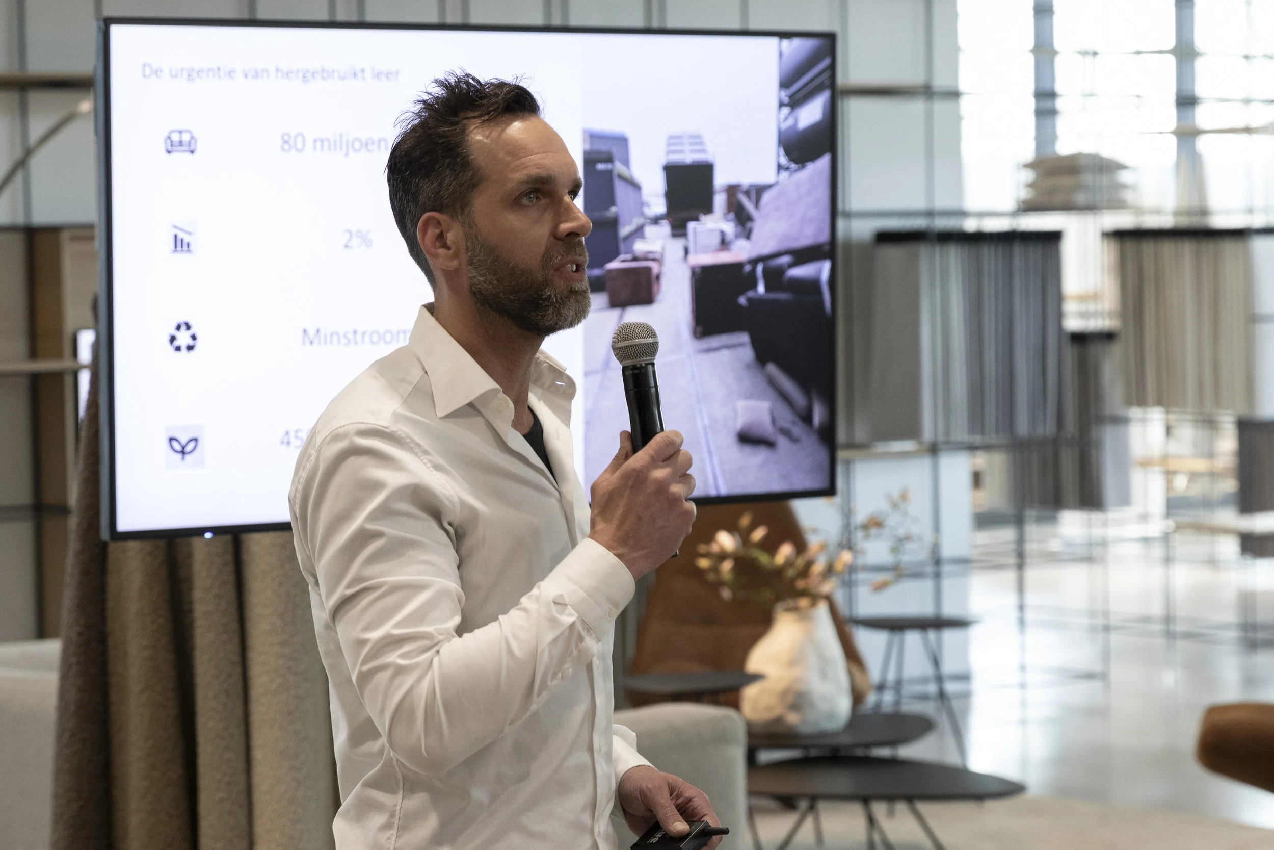 We doen dit niet alleen. Onze partners spelen een cruciale rol in het Circuleather-verhaal. De Gemeente Breda opende de deuren van haar demonatgehalvoor ons. Al sinds 2024 halen we daar regelmatig grote bigbags meubelleer op. Ook Tomingroep is een sleutelpartner: dit sociale werkbedrijf reinigt, knipt en sorteert het geredde leer voor ons. Dankzij de inzet van de medewerkers bij Tomingroep – die elk stuk leer ontdoen van naden, zomen en viezigheid – kunnen wij het materiaal weer als nieuw aanbieden.