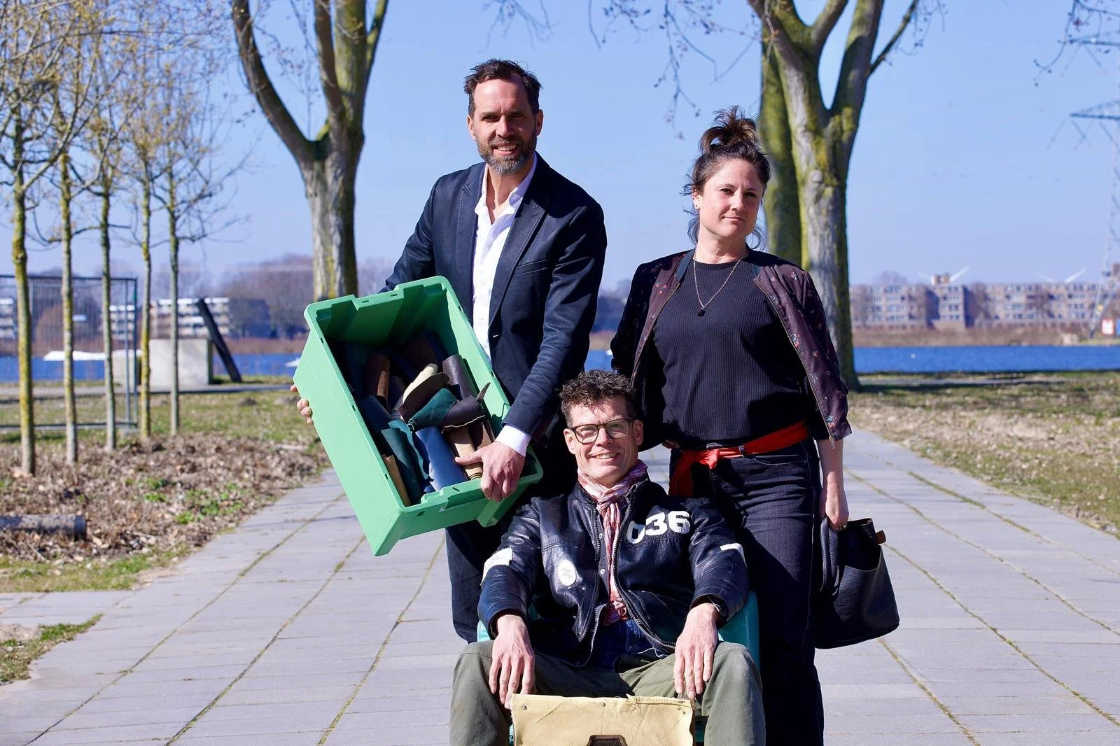 Circuleather is opgericht dankzij een bijzondere samenwerking tussen circulaire pioniers in Flevoland. Van links naar rechts: Thijs Tauw (Circuloco en C-Bèta), Jim van der Wardt (Circuloco, Stadsjutters, TheCrazySmile) en Femke Mostert (La Femme Qui Rit) bundelden hun krachten om een hardnekkig probleem aan te pakken: de verspilling van bruikbaar leer en de enorme berg zitmeubels die in Nederland verbrand worden.